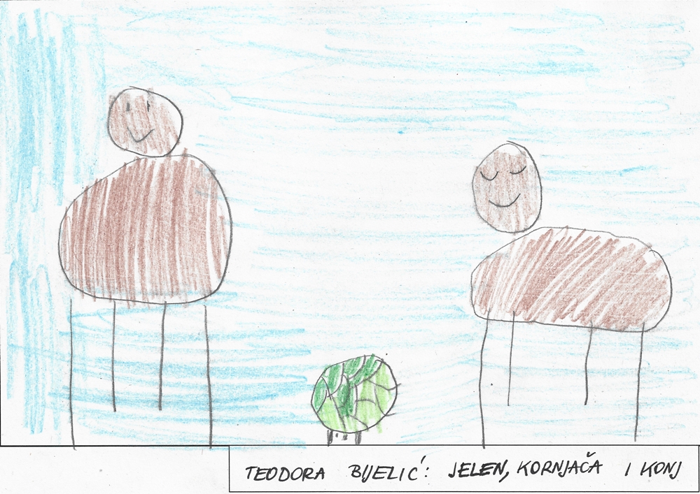 Jelen je išao u školu i onda mu je učiteljica kornjača rekla: „Kasniš osam sati!“