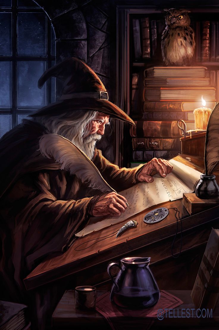 Štap se sastojao od manjeg zavinutog korijenja. Korijenje je međusobno krojilo spiralni krug. Taj je krug čuvao neku izblijedjelu svjetlost za koju nismo sigurni što je. Na vrhu štapa bio je zakačen jedan metalni stalak na kojem se nazirala hrđa. Na stalku ležala je knjiga drvenih korica koje su polako trunule, a papiri, odnosno stranice bile su ofucane. Živio je sam u staroj kolibi na vrhu jednog od sedam brežuljaka toga grada. Koliba mu je bila prepuna knjiga. On je uvijek sjedio i sebe zamišljao kao poznatog pisca i dobrog učitelja, ali ta mu se želja nije mogla ostvariti jer je on bio jedini stanovnik tog grada koji je znao čitati i pisati. Zbog toga se na njegovu štapu počinje nazirati hrđa, knjiga počinje truliti, a svjetlo slabiti jer je čarobnjak gubio želju za podučavanjem, pisanjem i čitanjem drugima. Samo je bespomoćno sjedio i pisao, dok se njegova prva knjiga na štapu sve više uništavala. Jednoga je dana ustao i odlučio sve promijeniti. Uputio se prema unutrašnjosti poluotoka. Lebdio je umjesto hodanja, tako da je vrlo brzo došao do željenog odredišta. Stao je pred velikim, čvrstim zidinama. Iza tih zidina skrivao se grad magičnih bića. Iz toga grada je čarobnjak protjeran zato mu se na licu nije vidio osmijeh. Njegovo ga je društvo protjeralo zbog njegova suprotnog mišljenja koje su oni pogrešno shvatili. Protjerala ga je njegova vrsta, čarobnjaci. Kada se suprotstavio njihovu vođi oko odluka koje su trebale naštetiti ljudima, izbacili su ga. Vrhovni čarobnjak po imenu Kirac nije mogao dopustit da ga netko makne s pozicije vođe pa ga je zato protjerao. Zbog njegova protivljenja, čarobnjak je završio u ljudskomu svijet koji je i branio. Sada je ponovno htio ući u čarobni grad, ali ne zbog osvete nego zbog toga što mu je trebala pomoć. Izrekao je riječi na nekom nerazumljivom jeziku i jedan se dio zida odlomio. Lebdeći je ušao. Nije to bio svakidašnji grad. U njemu je sve izgledalo drugačije nego u ljudskim gradovima. Bio je zaštićen prozirnom kupolom kako ga ljudi ne bi mogli pronaći. Vrijeme se nije mijenjalo kako je to „htjelo nebo“, nego su čarobnjaci upravljali promjenom vremena. U gradu se nalazio rudnik u kojem su radili patuljci. Tražili su metale koje su kasnije prodavali vilenjacima kako bi oni iskovali oružja u slučaju napada ljudi.