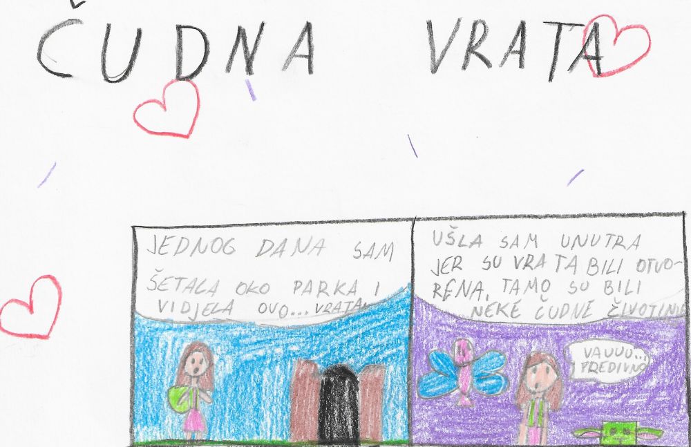 Strip: Avrora Štih Vrata iza ugla Čudna vrata – strip 19/02/2026 Top generacija 8 Views Avrora Štih, OŠ Petra Preradovića, strip, Zagreb Strip: Avrora Štih Avrora Štih, 4.B OŠ Petra Preradovića, Zagreb Mentorica: Vanja Vukosavić