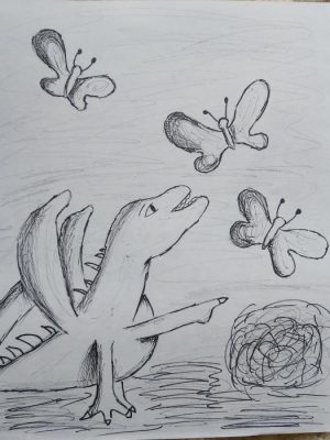 Zmajček Pozojček je u čudu gledao oko sebe. Sve je vrvjelo leptirima.