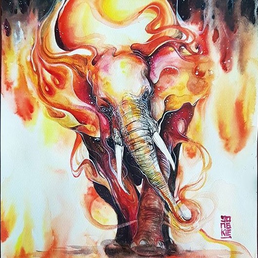 Zbog strašnih suša nekoliko dana kasnije u selu izbije požar. Domaće životinje okruži vatra i oblije ih znoj. “Umrijet ćemo!” poviče koza. Majmun vidjevši to ljuljajući se preko grana ode u selo gdje su bile afričke životinje, te ih zamoli za pomoć. “Slone, devo, brzo pomozite!” vičući reče majmun. Slon, deva i majmun trčeći dođoše u selo gdje su domaće životinje bile u plamenom obruču. Majmun se dosjeti da deva u svojim grbama ima zalihe vode. Slon je surlom poput vatrogasnog šmrka uzeo vodu od deve i ugasio požar. Domaće životinje bile su spašene. U znak zahvalnosti domaće životinje pozvale su afričke životinje iz susjednog sela na seosku gozbu punu obilja.