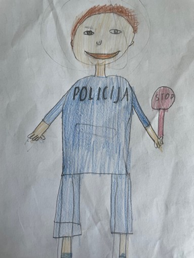 Policajac je tu za nas ako nam netko nešto ukrade. Zaustavlja vozače ako idu dok je crveno svjetlo na semaforu i tako brine o našoj sigurnosti. Ako se vozimo romobilom bez kacige, on je tu da nas zaustavi i upozori kako bismo bolje brinuli o sebi. Kada bi nas netko napao, on bi nam pomogao.