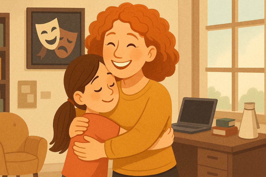 Često se u našim igrama prije vježbanja teksta dogode nepodopštine koje Maja rješava polaganim razgovorom i strpljenjem koje ima za nas kao i naša učiteljica. Jedan dan sam stigla ranije u kazalište i ona me pozvala da popričam s njom. Odvela me u svoj predivan ured u kojem se nalaze neobične fotelje i razna druga pomagala za kazalište. Pitala me jesam li dobro i jesam li se naspavala danas. Ispričala sam joj svoje male i velike strahove. Zagrlila me i rekla mi da se idem poigrati s drugim članovima kazališta koji su stigli. Osjećala sam se kao leptir koji leti mirisnom i sunčanom livadom. U razgovoru s tetom Majom shvatila sam da to uopće nisu neki veliki problemi i da ću ih riješiti. Zanimljive su njezine priče koje su joj se dogodile u životu, a još je ljepše kako ih priča. Često se znam toliko smijati njezinom pričanju da me zaboli trbuh. Naravno iz svake priče nam govori što je naučila na svojim pogreškama ili dobro određenim predstavama.
