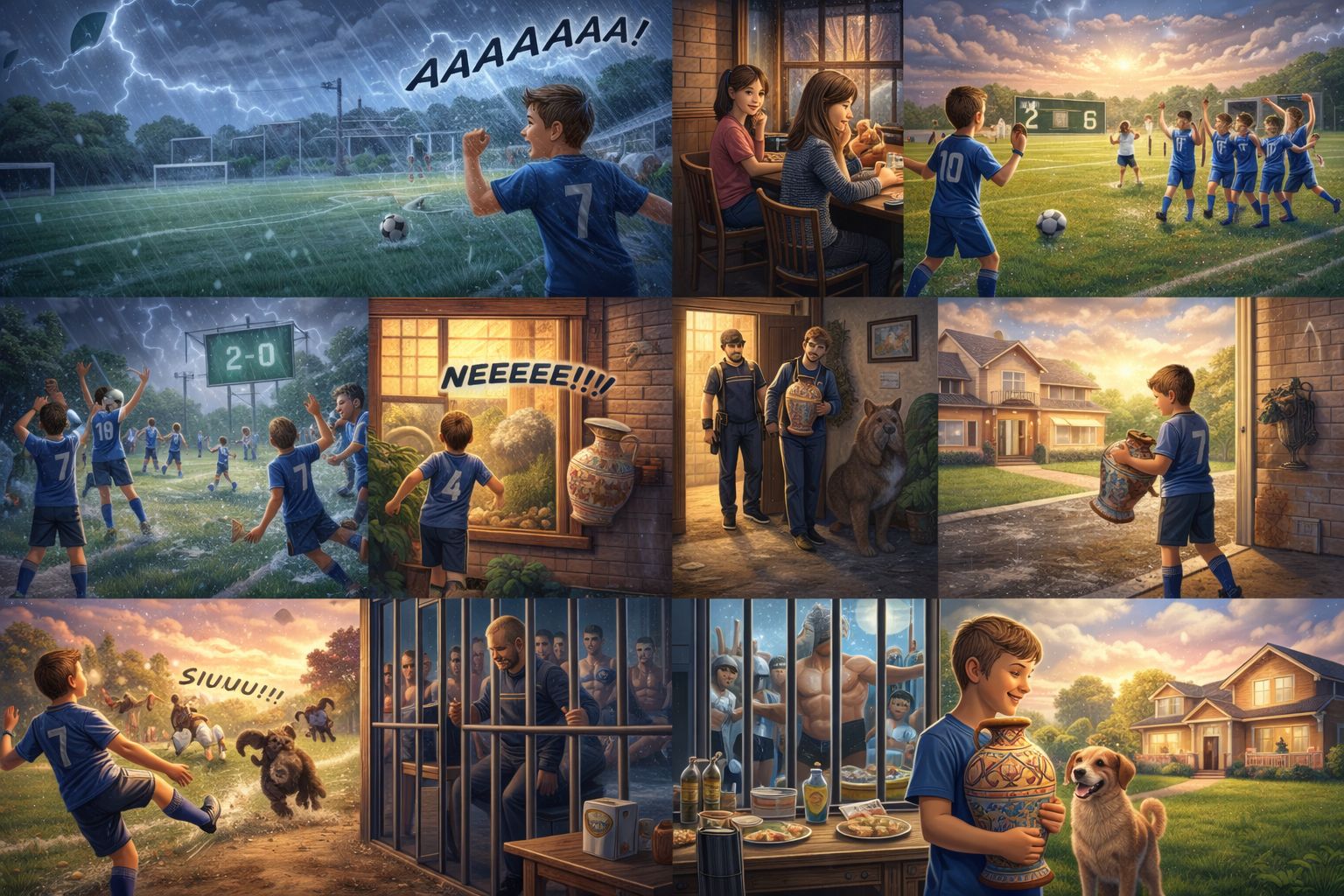 Prijavili smo policiji, ali oni nisu ništa našli, pa smo sljedeći dan vidjeli čovjeka s vazom. Taman smo išli na igralište, imao sam loptu, pa sam ga pogodio njome i on je pao, ali se vaza nije razbila, ja sam slavio SIUUUUUUU!!!