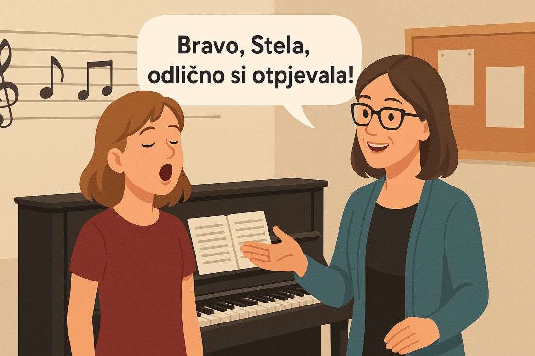U našim životima često susrećemo ljude koji ostavljaju neizbrisiv trag, a jedan od takvih skrivenih heroja svakodnevice je moja profesorica solo pjevanja u glazbenoj školi. Ova iznimna žena ne samo da me uči tehnikama pjevanja, već me i motivira da otkrijem vlastiti glas i izrazim svoje emocije kroz glazbu. Na njenom satu najviše volim kada mi kaže: “ Bravo Stela, odlično si otpjevala!”, ali i kad mi kaže: “ Stela, nisi baš dobro uvježbala.” To me jako motivira da budem još bolja.
