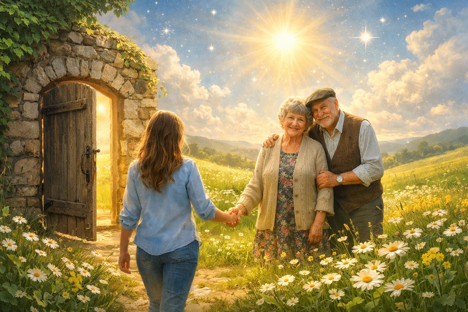Iza ugla naše ulice, na mjestu gdje obično samo brzo prođem, toga dana su stajala vrata. Bila su malena, drvena i malo ogrebena. Kao da su oduvijek tu, samo ih prije nisam primjećivala. Srce mi je kucalo jače nego inače, ali nisam osjećala strah. Imala sam osjećaj da me netko čeka. Kad sam otvorila vrata, zakoračila sam na livadu prekrivenu mekom travom. Zrak je bio topao i mirisan, a nebo veliko i svijetlo, puno sjaja. Sve je izgledalo kao san, ali sam znala da nije. Tada sam ih ugledala. Sigurno se pitate koga? Ugledala sam svog djeda i baku. Djeda nisam poznavala, umro je prije mog rođenja, ali sam znala kako izgleda s fotografija i bakinih priča. Baku sam poznavala i još uvijek pamtim njezine dobre i tople ruke. Bila je jako dobra baka.