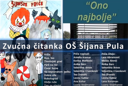 Zvučna čitanka OŠ Šijana Pula projekt je započet ove školske godine. Zamišljen je kao školsko natjecanje u čitanju. Učenici su se snimali mobitelima čitajući svoje priče ili priče svojih kolega iz e – knjiga nastalih na radionicama kreativnog pisanja i slali ih mentorima na mail. E – knjige možete pronaći na sljedećim adresama: